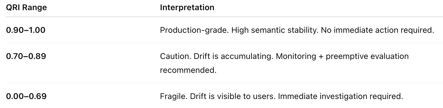 Drift is inevitable - governance is not. QRI turns GenAI quality into a measurable, trackable, leadership-ready KPI.