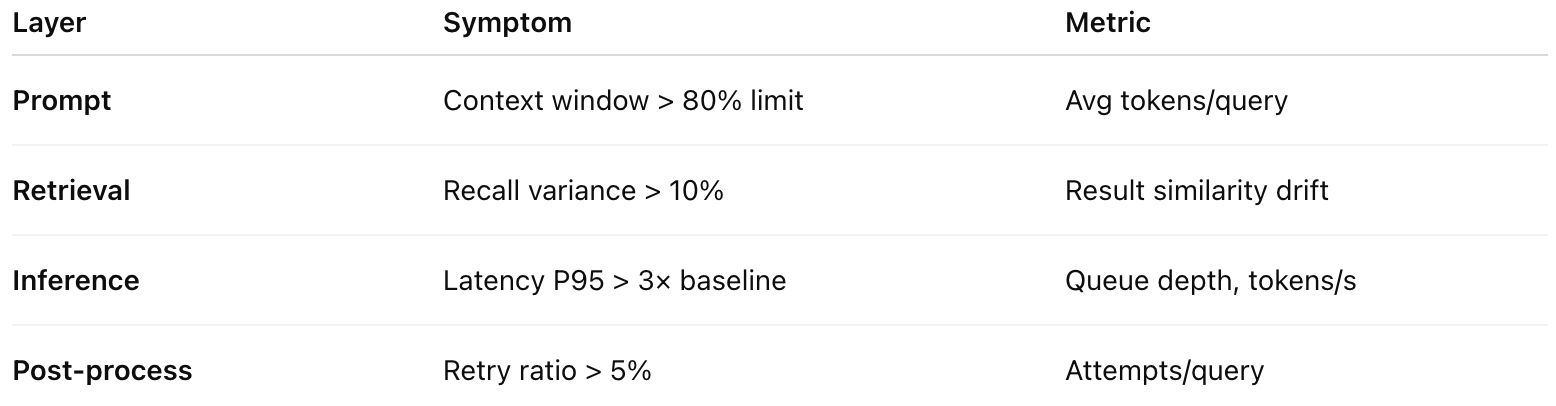 Reliability, not price, is the first signal of an unsustainable system. Once latency spikes or queue depth grows, engineers scale hardware blindly - compounding cost later.