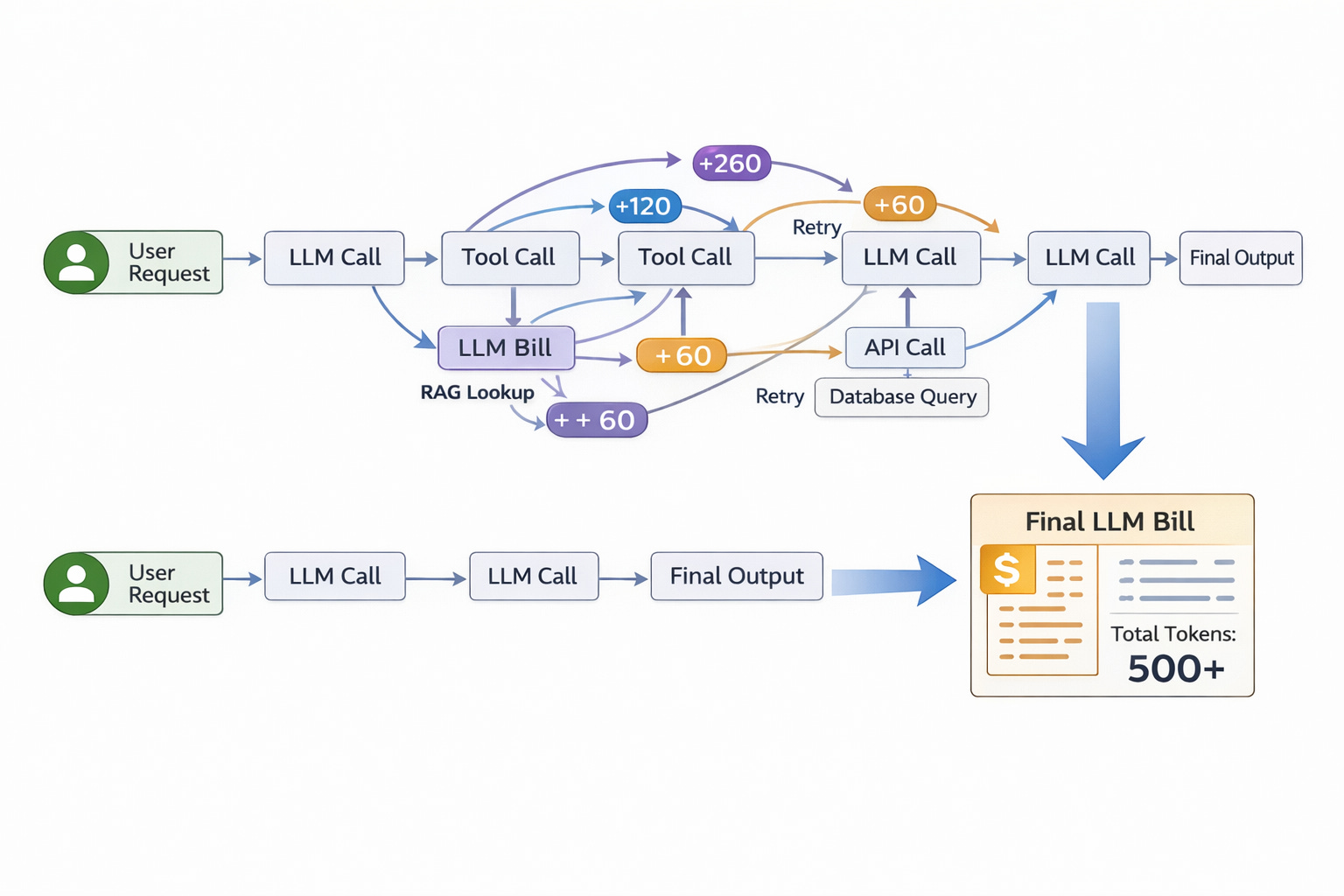 The problem is that almost none of this is visible in standard dashboards. Teams see a total number of tokens or dollars, but they cannot see which part of the workflow produced them.